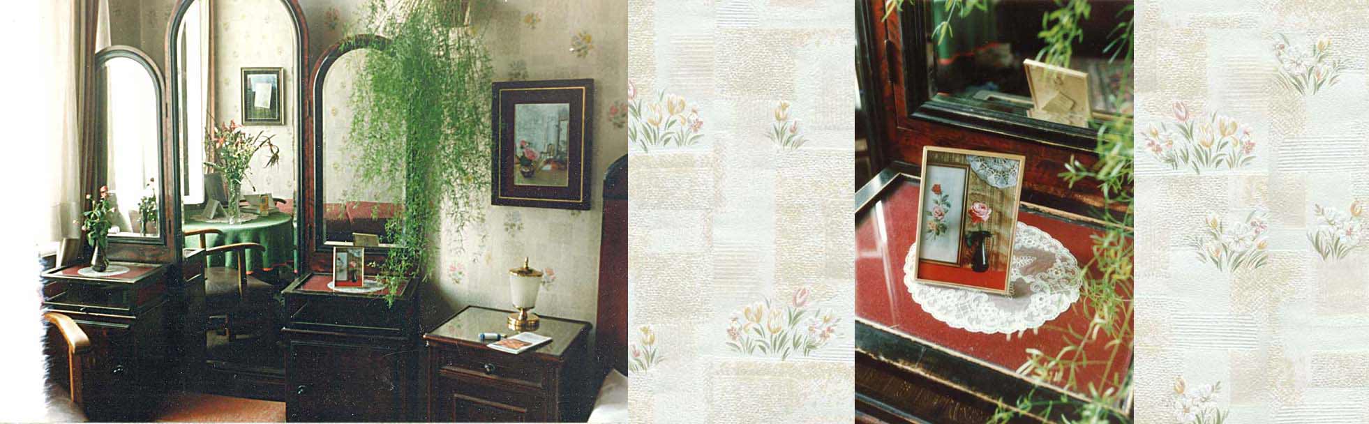 12: Rosa Rose, 11 x 15,2 cm, Stellbild, 5a Menzel mit Rosen, gehängtes Bild, 33 x 43 cm 5a Menzel mit Rosen, Stellbild 19 x 25 cm, und 5b Menzel mit Rosen, gehängtes Bild, 33 x 43 cm 39: Rote, rosa und gelbe Rosen, 24,5 x 42 cm, gefundenes Bild 47: o.T. (Mecklenburg-Vorpommern), 42,2 x 56,7 cm