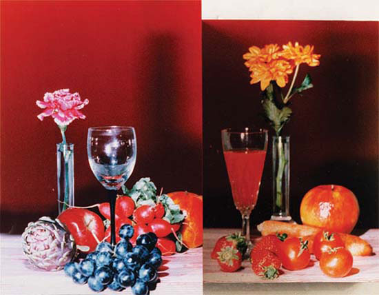 Früchtestilleben 43,7 x 30,2 x 22,5 cm Acryl auf MDF, Fotografie, 1991 Opulente Mahlzeit 43,7 x 30,2 x 22,5 cm Acryl auf MDF, Fotografie, 1991