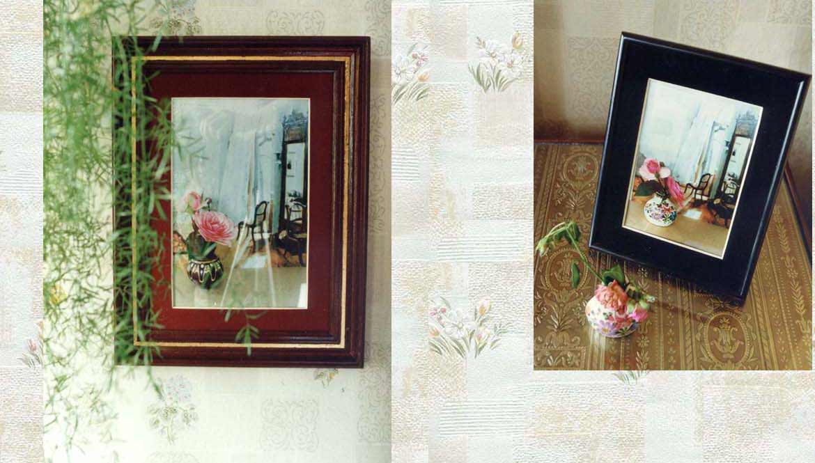 12: Rosa Rose, 11 x 15,2 cm, Stellbild, 5a Menzel mit Rosen, gehängtes Bild, 33 x 43 cm 5a Menzel mit Rosen, Stellbild 19 x 25 cm, und 5b Menzel mit Rosen, gehängtes Bild, 33 x 43 cm 39: Rote, rosa und gelbe Rosen, 24,5 x 42 cm, gefundenes Bild 47: o.T. (Mecklenburg-Vorpommern), 42,2 x 56,7 cm