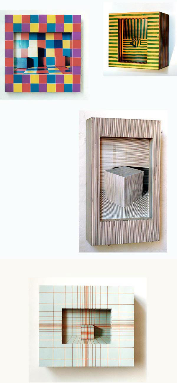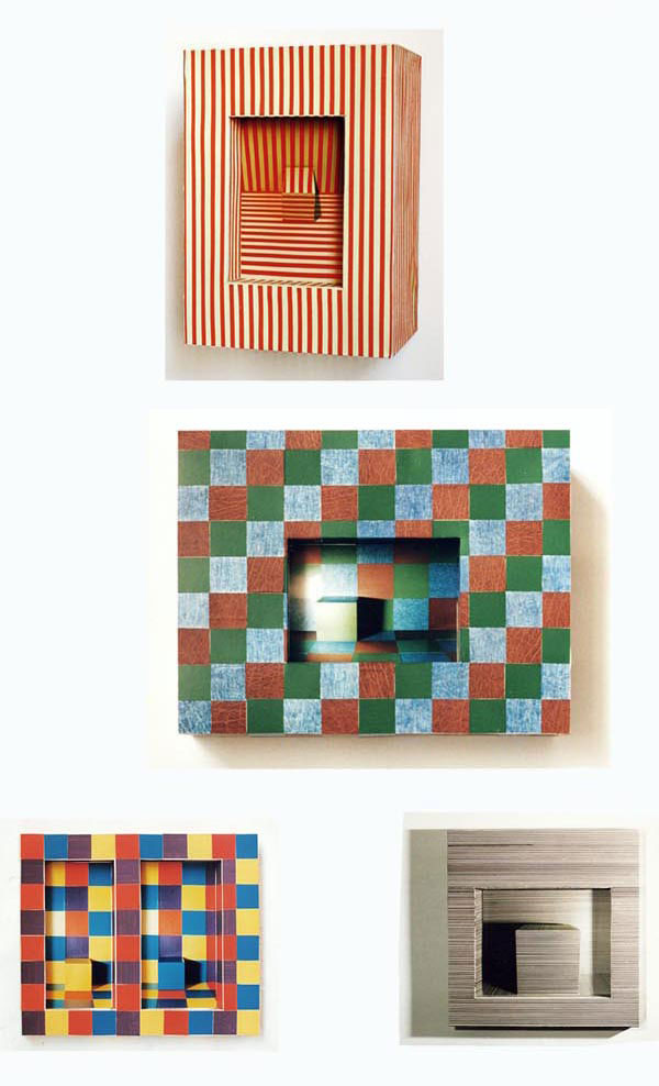 Alle: MDF Kästen bemalt mit Acryl, und Fotografie;
